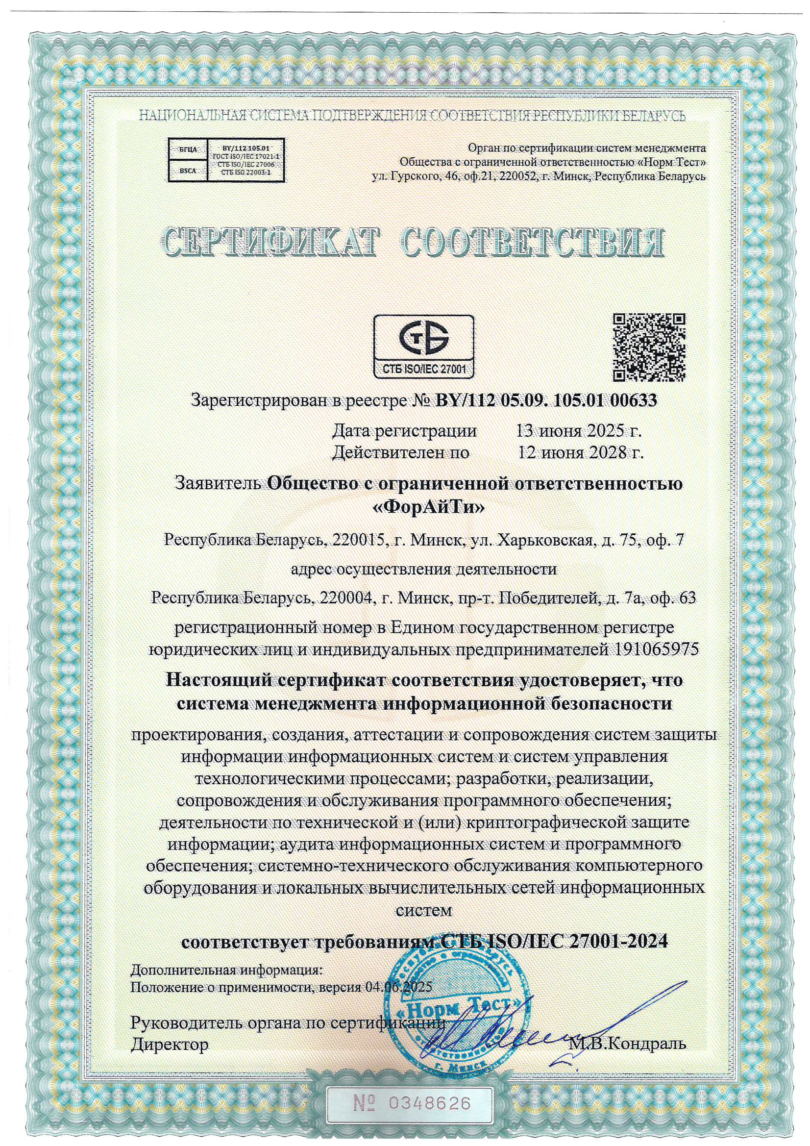 Местонахождение лицензиата: 220074, г. Минск, ул. Харьковская, д. 75, комн.7